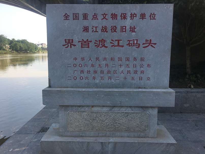 “巍巍南岭,横亘前方,滔滔湘江,奔腾北上。英勇红军,挥师西向,前有强敌,后有虎狼。血肉之躯,铜壁铁墙,全军奋勇,强力破障。前仆后继,势不可当,打通血路,三军过江。数万将士,血洒湘江,为国捐躯,长眠山岗。”这是2014年11月21日,朱德、周恩来、董必武等60多位红军将士的后代及100多位相关部门的同志来到中央红军经过的界首渡口祭奠在红军长征突破湘江的战役中牺牲的革命先烈所编写的湘江祭文中节选的一部分。为了亲身感受革命先辈走过的长征路,继承和传承先烈们不畏艰难险阻、敢于献身的优秀精神品质,7月16日下午,桂林理工大学土木与建筑工程学院兴安“寻红色足迹,走好新时代长征路”实践队从界首中心小学出发徒步前往位于界首的红军长征突破湘江渡江指挥部旧址红军堂感受军旅文化。
