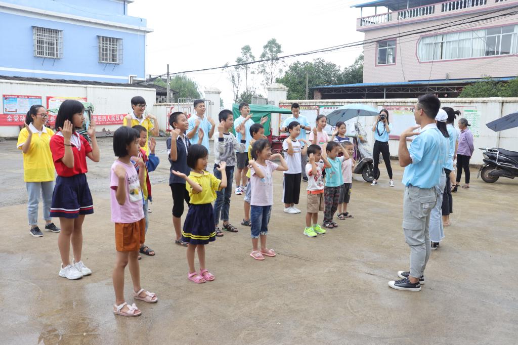 15日上午,在三树村委会,团队成员在太阳成集团122ccvip团委书记姚慧老师的带领下认真布置完画室后,看到当地居民带着孩子们陆陆续续来到三树村委会,立即积极引导孩子们到画室就座并分发画纸和画笔,然后指导他们如何更好地画出他们脑海中的图画。绘画过程中,整个画室的气氛非常活跃,家长陪伴孩子们认真地画出自己心中的图画,团队成员在旁边积极指导。绘画完成后,孩子们拿着自己的作品与团队成员开心合影。随后,团队成员热情教孩子们跳拍拍操,孩子们十分兴奋地学习着。由于突然下雨,趣味运动会被迫取消,但是孩子们热情不减,团队成员给每位孩子分发书包、书本和笔盒,希望他们快乐成长、早日成才。