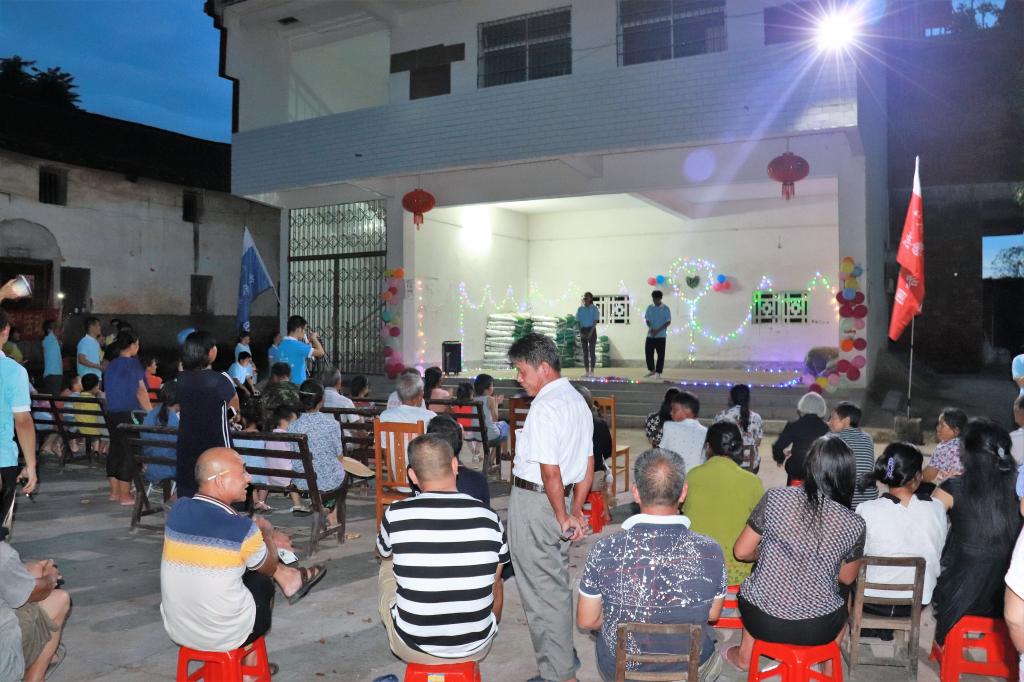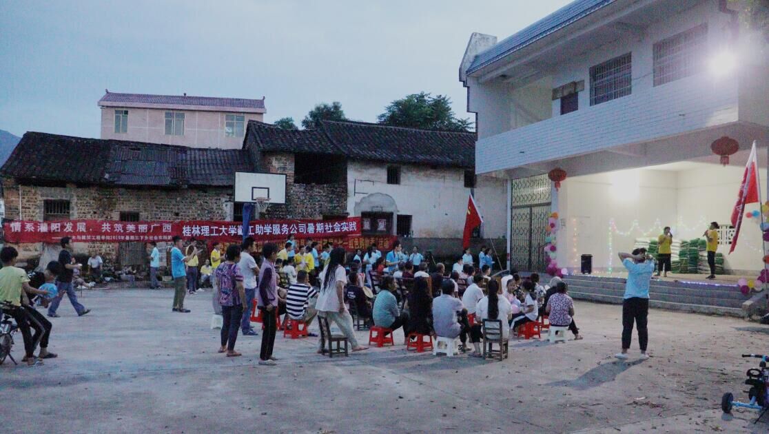 7月15日“情系灌阳发展,共筑美丽广西”暑期社会实践团在灌阳县新街镇三树村委会进行支教绘画活动,在三树村委会广场举办三下乡文艺晚会。