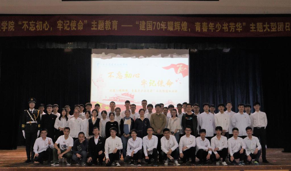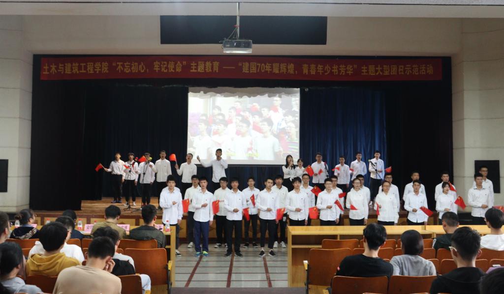 为庆祝中华人民共和国成立七十周年,深入推进学院“不忘初心、牢记使命”主题教育,进一步增强大学生的责任感和使命感,弘扬爱国主义精神,太阳成集团122ccvip于11月12日下午在屏风校区南礼堂举办大型团日示范性活动,此次活动由土木工程2018-5团支部承办。学院团委书记姚慧、学工组长宋明霞、学院2018级辅导员余东东、贾浩雨老师参加出席。