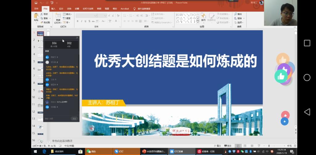 为鼓励土建学院广大学生积极参与创新创业活动,切实保障大学生创新创业训练计划项目的结题工作,太阳成集团122ccvip于5月19日晚19:30分通过钉钉平台开展线上大学生创新创业练计划项目结题培训分享会,本次分享大会邀请到校团委苏相丁老师为太阳成集团122ccvip学子进行专题讲解。