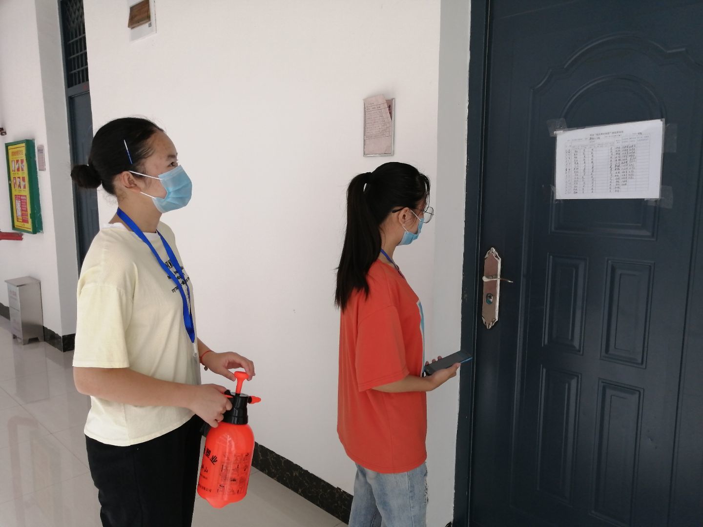 志愿者在雁山校区宿舍进行消杀