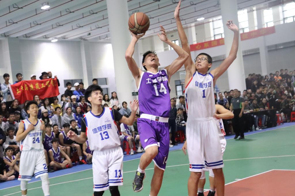 10月29日,“桂工杯”男篮决赛在雁山新体育馆如期举行,土木与建筑工程学院球队对战信息科学与工程学院,本场球赛为“桂工杯”篮球赛的决战之巅。