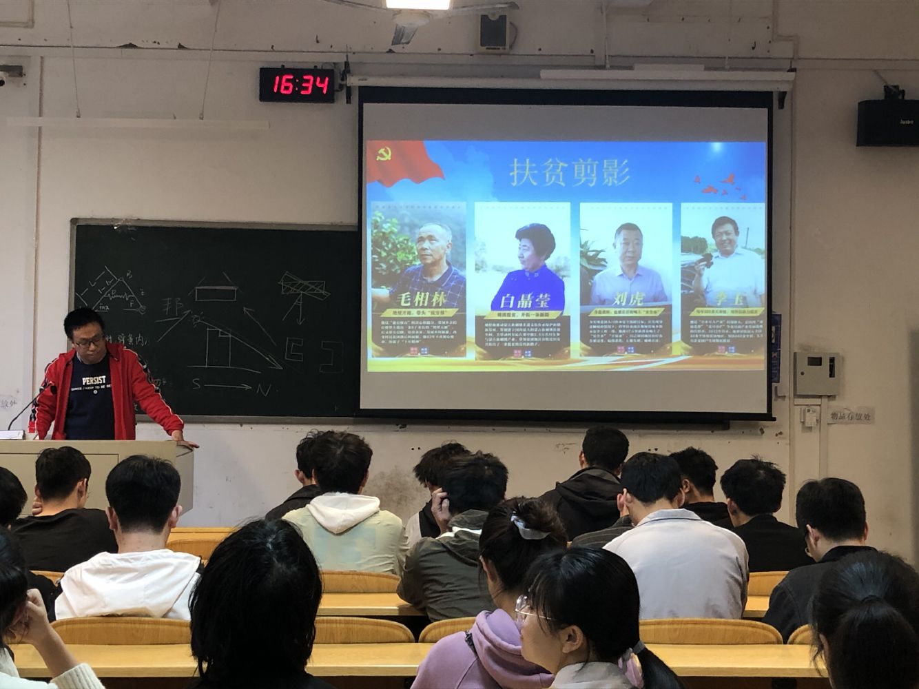 本次活动第一项内容感悟“重走长征路”,主持人简要讲解红军开始长征,到三大主力会师的经过,其中包括,四渡赤水,强渡大渡河等重要战役。其次,黄满锋带领同学们了解红色基因在当代的传承,其中包括扶贫工作中的许多感人事迹。在讲到此处时,周家鸿同学代表发言:“我在暑假期间,去采访一个成功脱贫的村庄。这个村庄能够成功脱贫少不了村支书的带领,村支书带领村民建工厂、修道路、兴产业,终于完成脱贫任务,这样的精神十分令我感动。”。