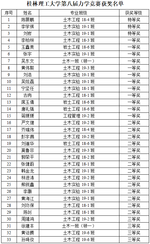 经近1个月来的筹备,桂林理工大学第八届力学竞赛于2021年3月27日顺利举行。共有来自土木建筑与工程学院、机械与控制工程学院、材料科学与工程学院、环境科学与工程学院、地球科学学院以及化学与生物工程学院等多个学院的近五百名本科生、研究生报名参赛。