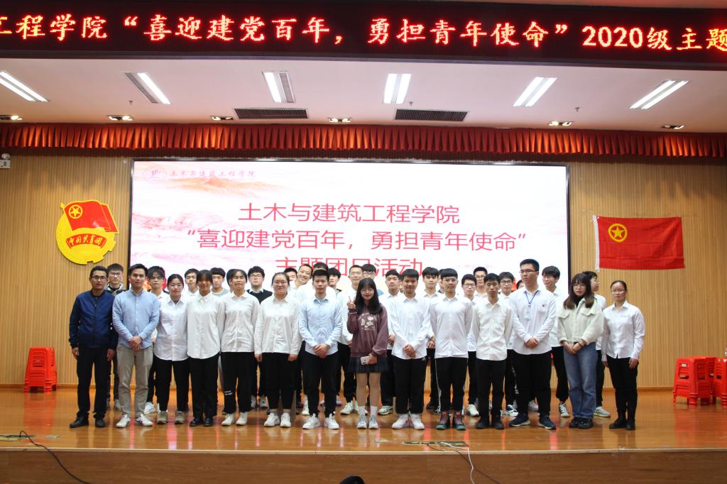 为学习中国共产党波澜壮阔的革命历史,重温革命精神,4月20日由土木与建筑工程学院土木类2020-1班团支部和土木类2020-4班团支部承办的“喜迎建党百年,勇担青年使命”主题大型团日活动在雁山校区图书馆报告厅举行,学院团委副书记安邦国老师、2020级辅导员谢基柱老师、唐子晴老师、2017级学生党员廖宏臻同学以及2020级同学代表参加了本次活动。