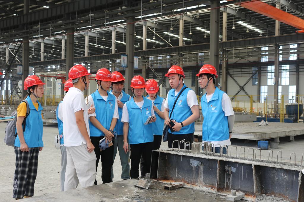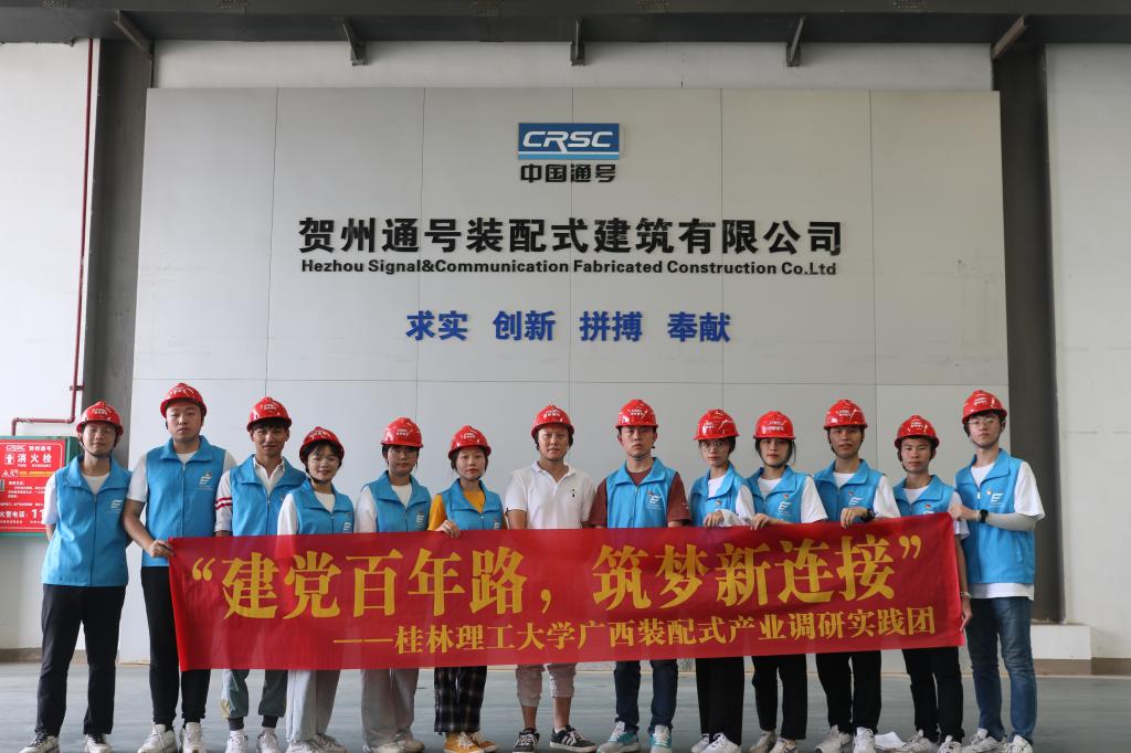 为深入调研预制构件流水生产线,了解装配式建筑设计与施工一体化应用情况。2021年7月14日,太阳成集团122ccvip“建党百年路,筑梦新连接”——广西装配式产业调研实践团赴贺州市通号装配式建筑有限公司和该公司的两处落地项目开展暑期社会实践活动。