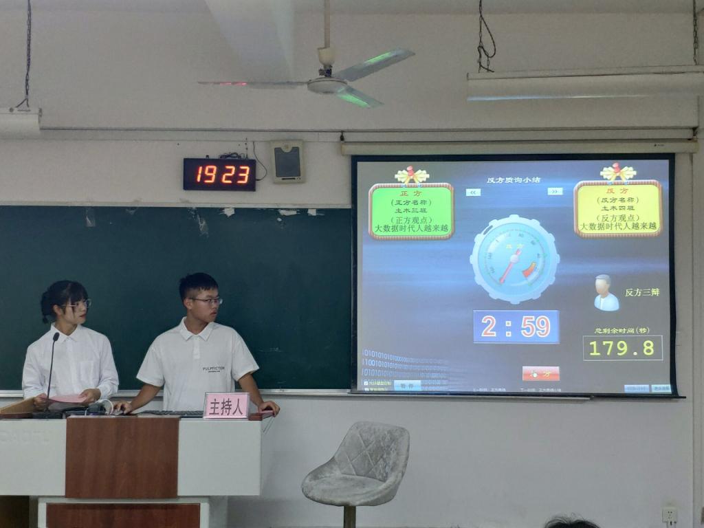 议题为“男女平等靠男方还是女方”的辩论赛由建筑类2021-1班担任正方,土木类2021-5班担任反方。双方辩手在06504教室展开唇枪舌战,反方辩手理由充分能言善辩,但正方辩手丝毫不惧,引经据典论理晓情,最终赢得比赛。在06505教室一场题为“在大数据时代人越来越自由还是不自由”也在激烈进行,土木类2021-3班担任正方,土木类2021-4班担任反方,双方旗鼓相当,赛场上激烈对答获得观众的连连惊叹,比赛进入到白热化状态,正方辩手思维缜密引例经典最终赢得比赛,同时反方辩手表现也十分优秀,在分析例子阐明观点等方面也有出色表现,但相比正方还是略败一筹。紧接着是06506教室“关于天灾比人祸更可怕还是人祸比天灾更可怕”的辩论赛,其中土木类2021-2班担任正方,土木类2021实验班担任反方。这场比赛双方更是赛出风采,虽然正方辩手在语言表达和逻辑思维方面占据优势,但反方辩手更善于引用历史事件将情融于理中,并且思维敏捷善于提问,最后以反方辩手表现更出色赢下这场比赛。