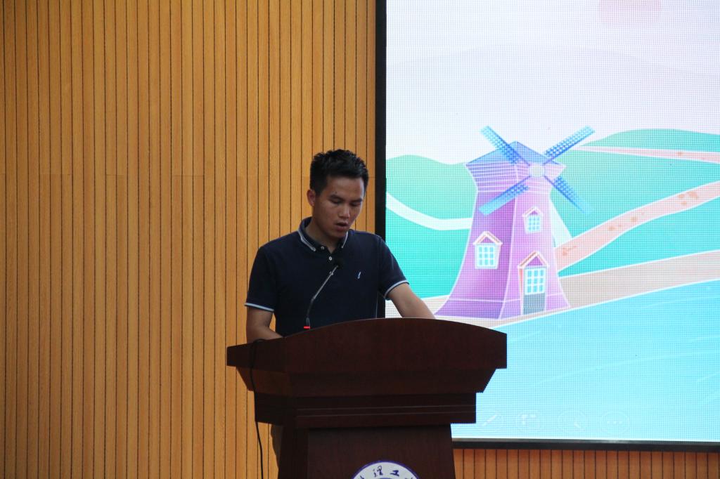 童柏源同学代表“知乡近民情,乡村规划行”社会实践团介绍所在团队的暑期实践活动的主要内容,包括乡村产业发展调研、乡村娱乐场所规划、“大手拉小手”乡村教育行等,并着重于分享了团队丰富的实践成果,为助力乡村产业发展、乡村娱乐文化发展等都提出了创新建议,并总结道:“三下乡”社会实践活动不是简单的游玩,而是切实的需要我们发挥吃苦耐劳精神,同时注重团队协作,及时发现问题,积极解决问题,才能达到良好的社会实践效果。