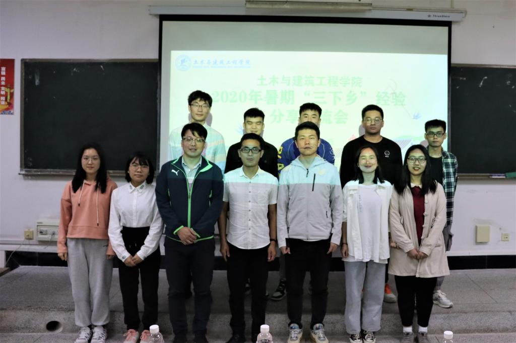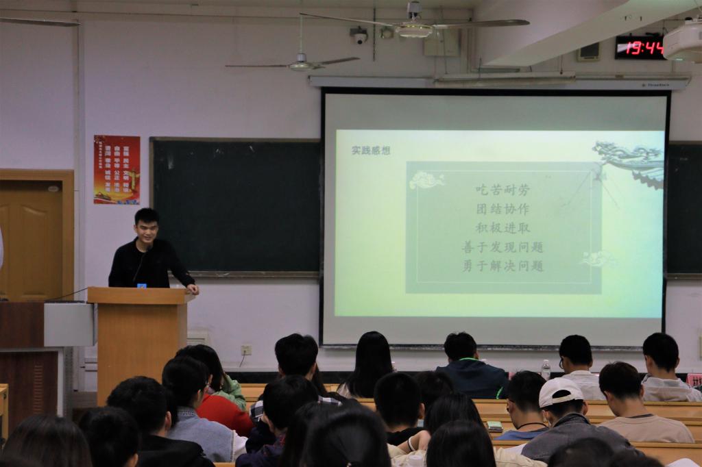 为帮助同学们了解“三下乡”暑期社会实践活动,激励同学们关心农村发展、助力乡村振兴,土木与建筑工程学院分别于5月18日、5月29日在屏风校区9201教室和雁山校区图书馆报告厅开展2020年暑期“三下乡”经验分享交流会。由“知乡近民情,乡村规划行”暑期社会实践团、“穿越千年文化,助力乡村振兴”暑期社会实践团、“寻疍家文化,探贝雕工艺”暑期社会实践团三支实践队伍进行活动经验分享,学院团委副书记安邦国老师、2017级辅导员张宇博老师、2018级辅导员贾浩雨老师、2020级辅导员谢基柱老师、学院各年级部分同学参加本次分享会,并邀请学校各学院分管学生社会实践活动的负责人参加本次分享会。
