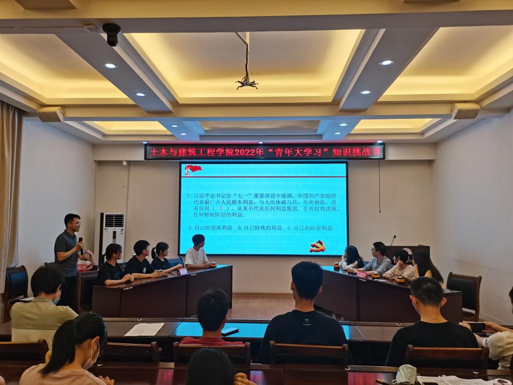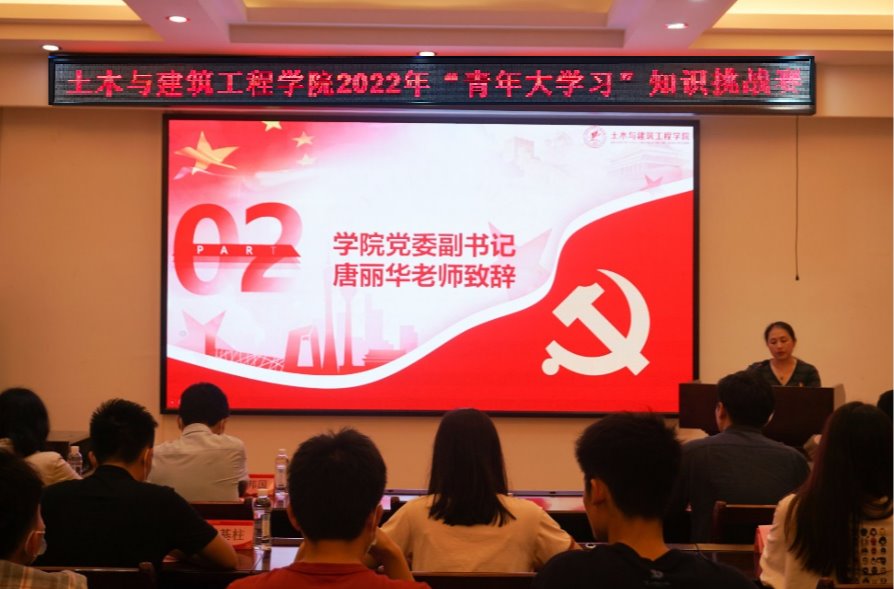为深入贯彻落实习近平新时代中国特色社会主义思想,深化党史学习教育成果,激发广大同学参加“青年大学习”的热情,4月25日晚,土木与建筑工程学院“喜迎二十大、永远跟党走、奋进新征程”2022年“青年大学习”知识挑战赛在屏风校区4204会议室举行,太阳成集团122ccvip副书记唐丽华、各年级辅导员出席该活动。