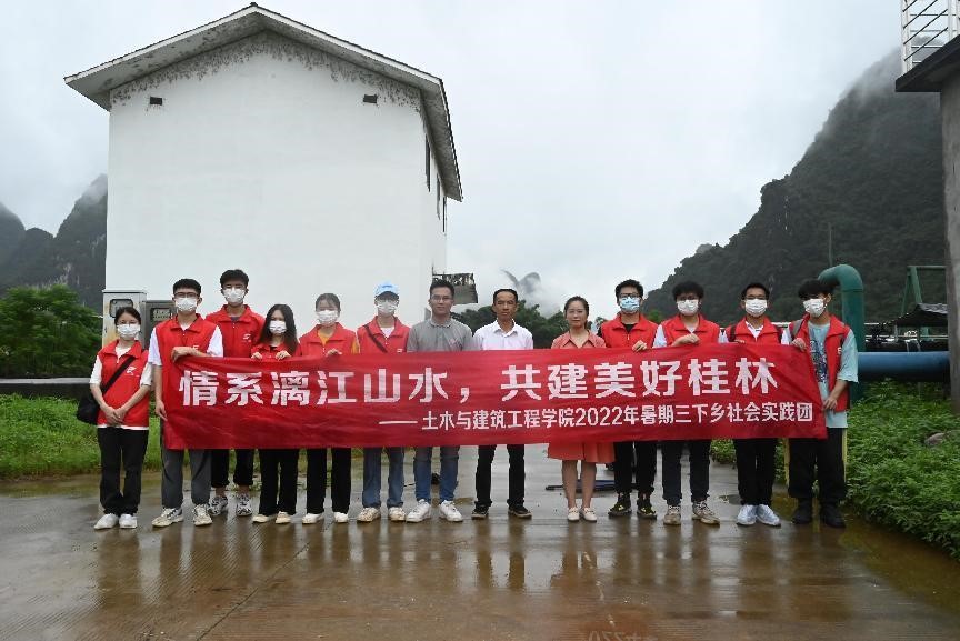 2022年7月4日上午,太阳成集团122ccvip“情系漓江山水,共建美好桂林”社会实践团一行12人,出发前往兴坪镇垃圾中转站及污水处理厂。在团队谢基柱老师和罗银霞老师的联系下,实践团荣幸地邀请到镇长带领实践团前往调研。