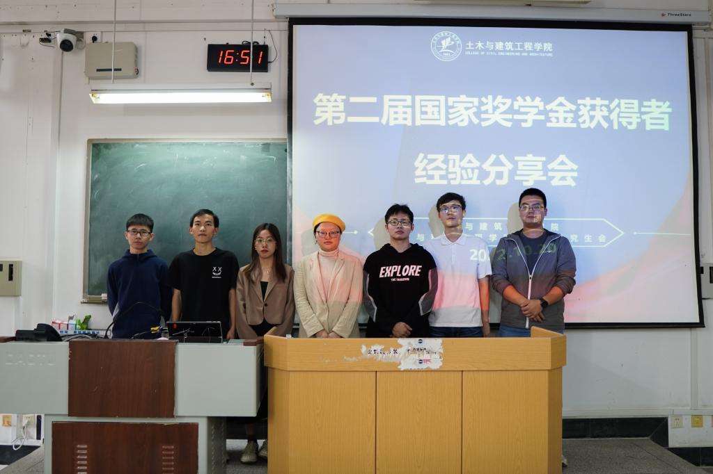 青春由磨砺而出彩,人生因奋斗而升华,为鼓励广大学子树立远大目标,激发学生热爱学习、努力成才的热情,2022年10月20日14:30,在屏风校区公共教学楼9309教室,土木与建筑工程学院举办“国家奖学金获得者经验分享会”,邀请了七位获得国奖殊荣的优秀学子分享他们的成功经验,学院团委副书记安邦国老师和研究生辅导员经玲老师参加了此次分享会,研一和研二的学生也积极报名参加了本次活动。