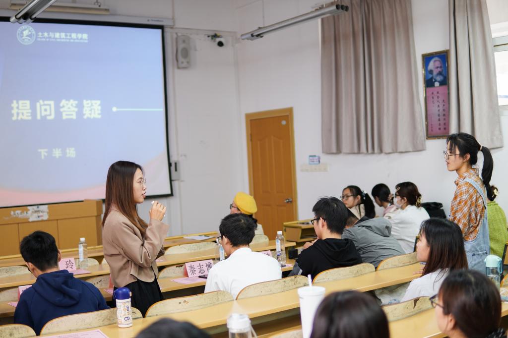 分享结束后,在场的同学积极向国奖分享者提问,师兄师姐也很认真地为大家答疑解惑。最后,老师和国奖获得者合影留念。