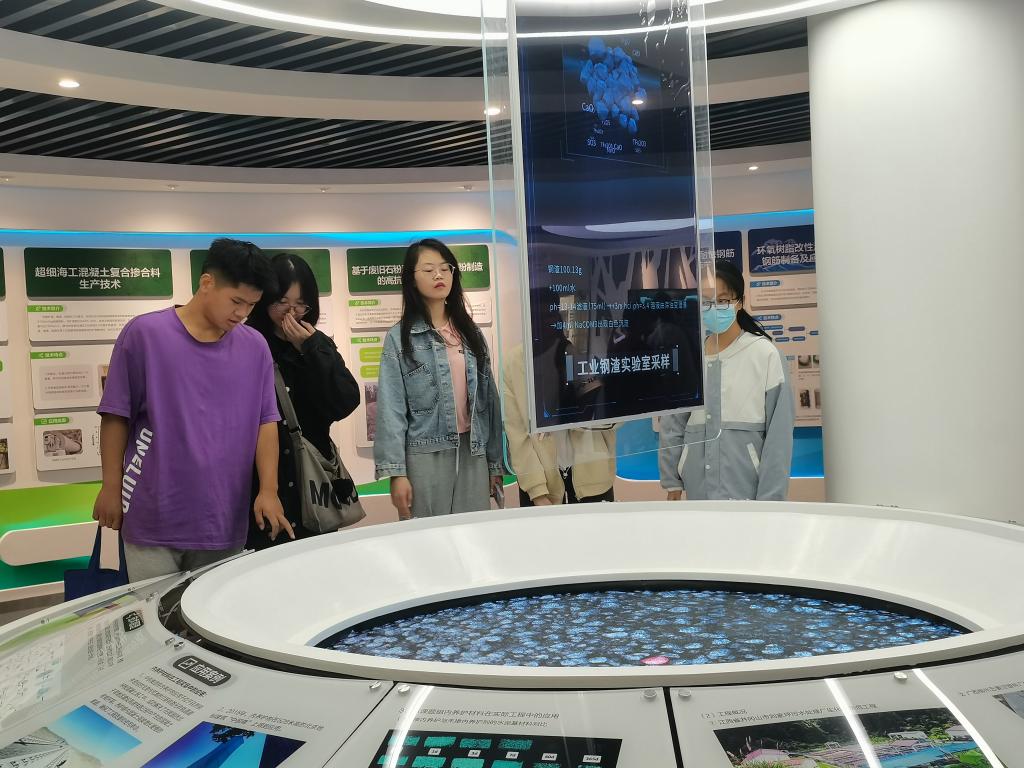 活动中,全体参观学生在工程中心明阳老师、周熹老师的带领下,在工程中心重点参观学习了学院教师科研团队和创新创业教育团队科研创新成果,重点了解学习了绿色建材及再生材料、海洋工程新材料、特种混凝土材料、交通工程新材料和尾矿精细化开发与应用等方面的研究和应用等内容。工程中心展览的成果展深深吸引了广大同学的眼球,激发了同学们的兴趣,让同学看到了科研成果如何创新落地以服务国家发展需求。
