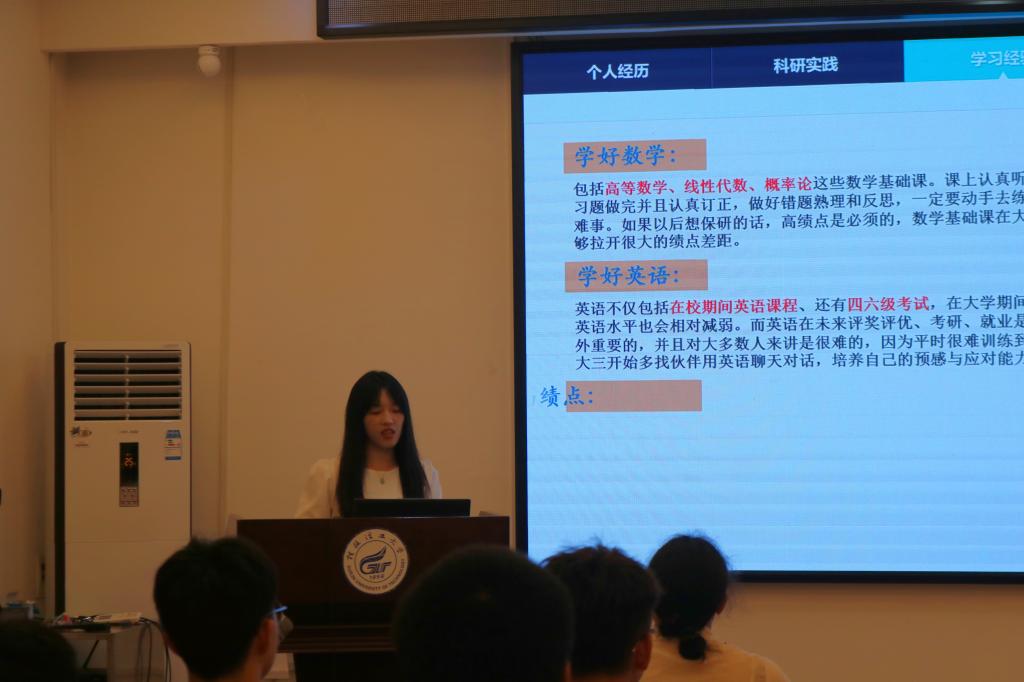 活动中,三位国奖生代表刘安宇、闭李灵、林进涛分别结合他们自身经历从学习方法、时间管理、科研关键步骤、社会实践核心、未来发展目标等内容分享宝贵经验。在互动环节中,国奖生代表们为同学们解答了学习、生活中所遇到的困惑,并鼓励同学们要设定合理的学习目标,制定并落实计划,做好细节,做到学以致用,在实践中不断提升自我。