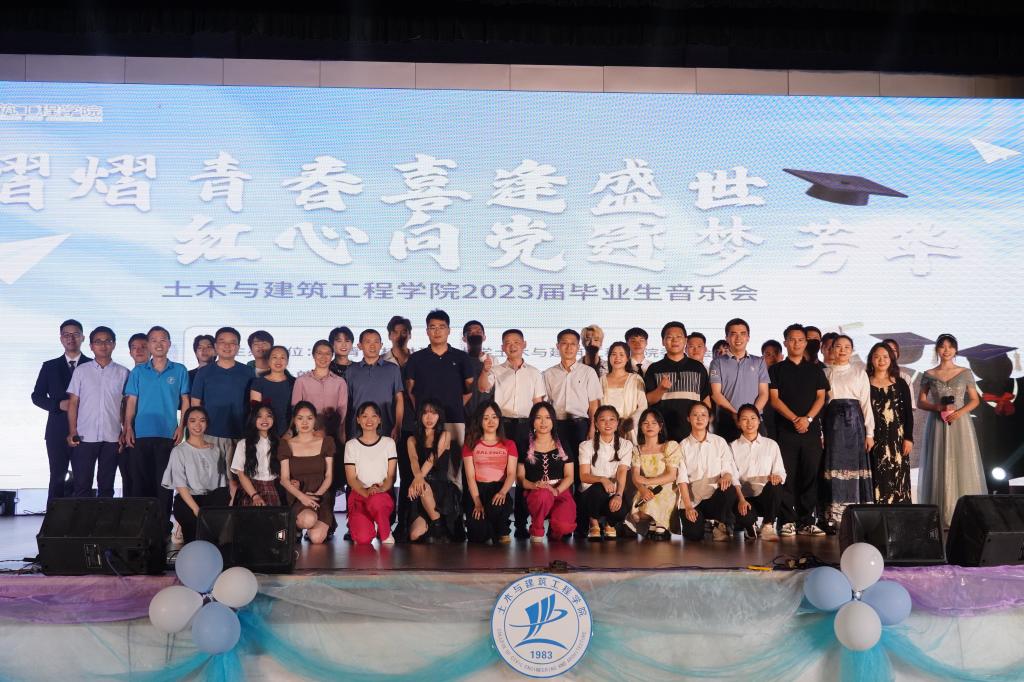 岁月不居,时节如流。为了纪念过去大学生活中那些独一无二闪光的日子,桂林理工大学土木与建筑工程学院团委、学生会2023年6月10号于屏风校区体育场三楼组织了以“熠熠青春喜逢盛世,红心向党逐梦芳华”为主题的2023届毕业生音乐晚会。