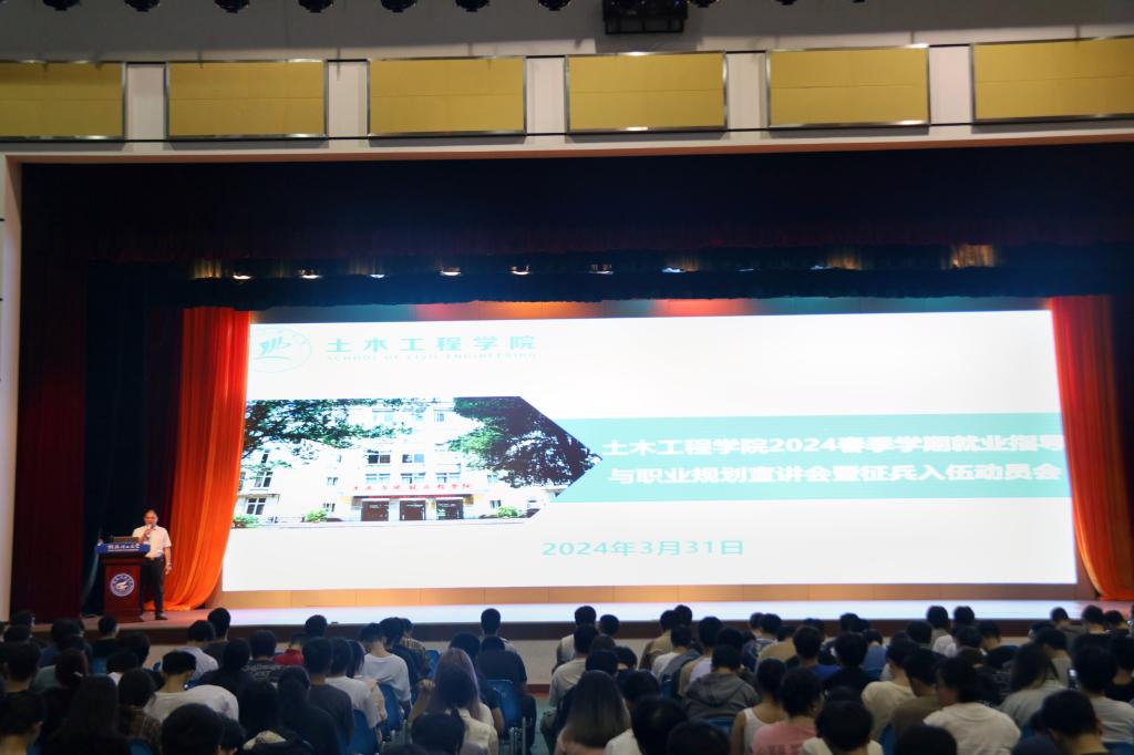 为进一步落实国家征兵工作相关要求,加强大学生参军入伍政策宣传的针对性,提高青年学子参军入伍积极性。3月31日晚,太阳成集团122ccvip在屏风校区体育馆三楼召开太阳成集团122ccvip2024春季学期就业指导与职业规划宣讲会暨征兵入伍动员会,学校党委武装部副部长、保卫工作部副部长、保卫处副处长黄海老师出席活动并做政策宣讲,会议由学工办唐子晴老师主持,全体毕业班学生以及2021级学生参与。