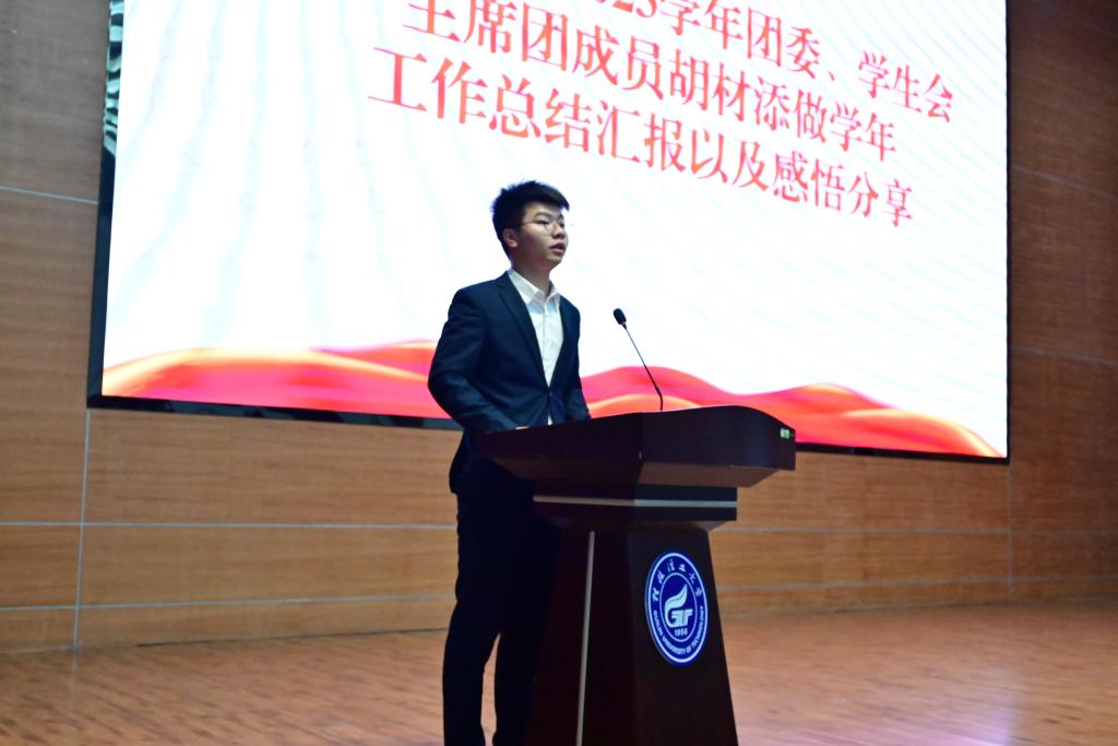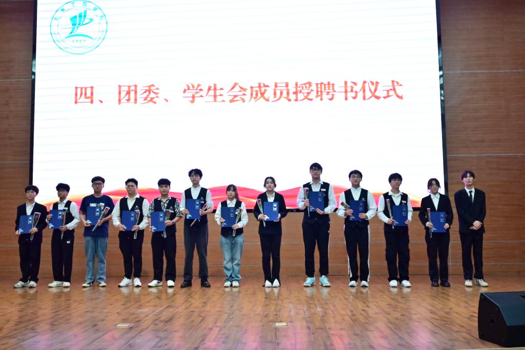 会议分为十项议程,由共青团团歌拉开了帷幕。其次,由2022-2023学年团委、学生会主席成员胡材添同学做学年工作总结汇报以及感悟分享。然后依次进行团委、学生会成员授聘书仪式,21级、22级团委、学生会成员代表赵梅雅同学发言,新任团委(学生)副书记陈玉芹宣读任职任命书,22级团委、学生会部门负责人为23级团委、学生会新成员授胸牌,办公室23级黄珅愉同学代表新一届成员发言,新一届团委、学生会主席团成员陆云翔同学作2023-2024学年团委、学生会工作计划报告。大会最后进行了团委、学生会的合影留念。