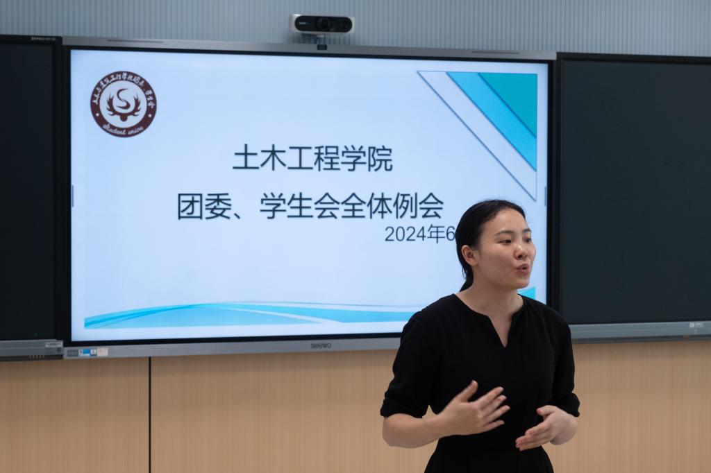 会议初始,主席团成员管家艺同学对最近举办的活动进行了总结,肯定了每一位工作人员的努力和成果,着重指出各部门之间进行合作协调的重要性。接着,主席团成员陆云翔同学对一年来团委、学生会的大型工作进行了总结,肯定了团委、学生会的精神风貌,同时强调了要关注下学年将开展的迎新工作、换届工作等。随后,张绪婷老师做总结讲话,她表示全体学生会成员要团结协作,具有强烈责任心,积极主动挑起大梁,将团委、学生会工作做得更好,全身心投入为学院及同学们服务中去。