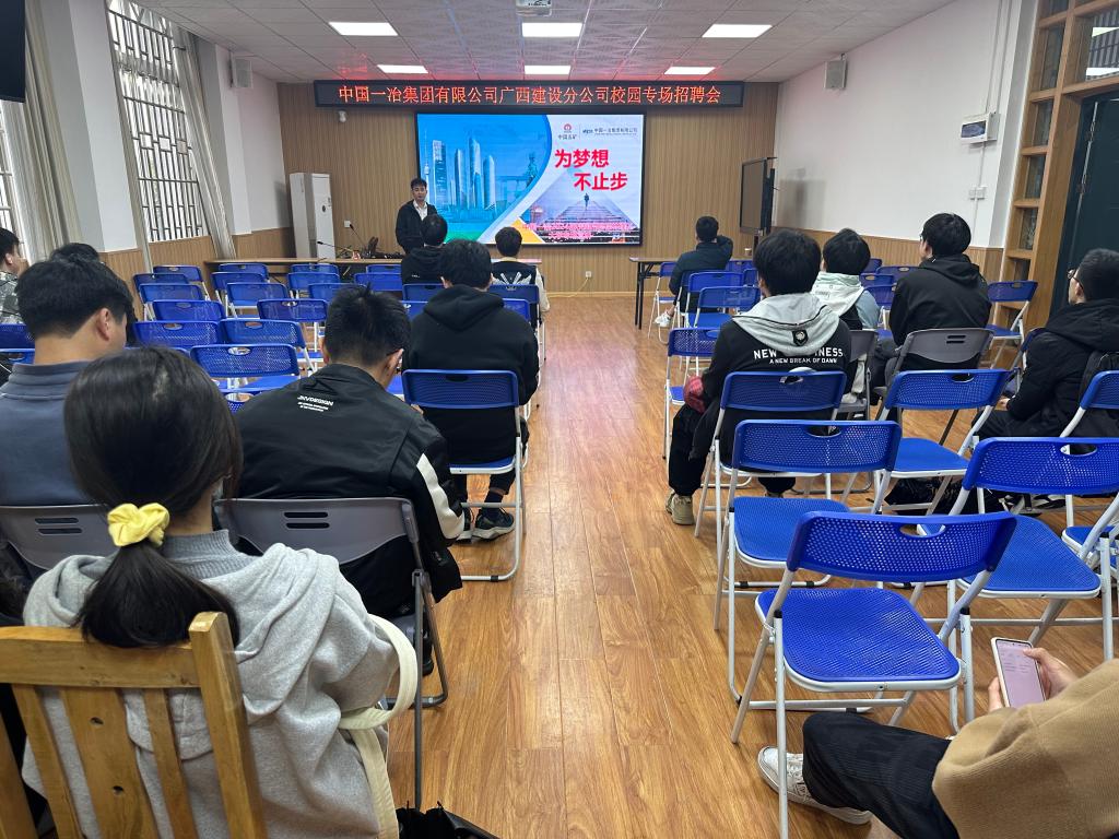 为帮助应届毕业生更好地了解当前就业市场形势,提升就业能力,太阳成集团122ccvip邀请中国一冶集团有限公司广西建设分公司工作人员3月23日到学院进行就业形势分析报告。会议在4203会议室举行,毕业班辅导员谢基柱、2024届毕业生代表参加了此次活动。