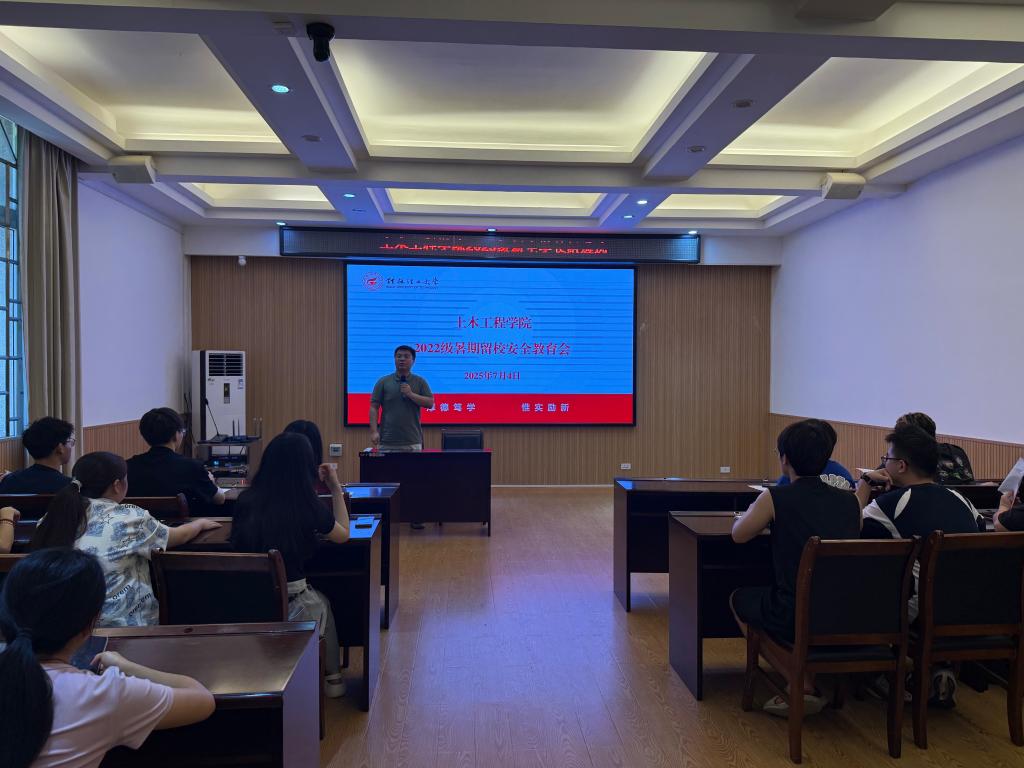 为加强暑期留校学生安全管理,学院于7月4日在4204会议室召开2025年暑期留校学生安全教育会。学院相关辅导员及全体暑期留校学生参加。