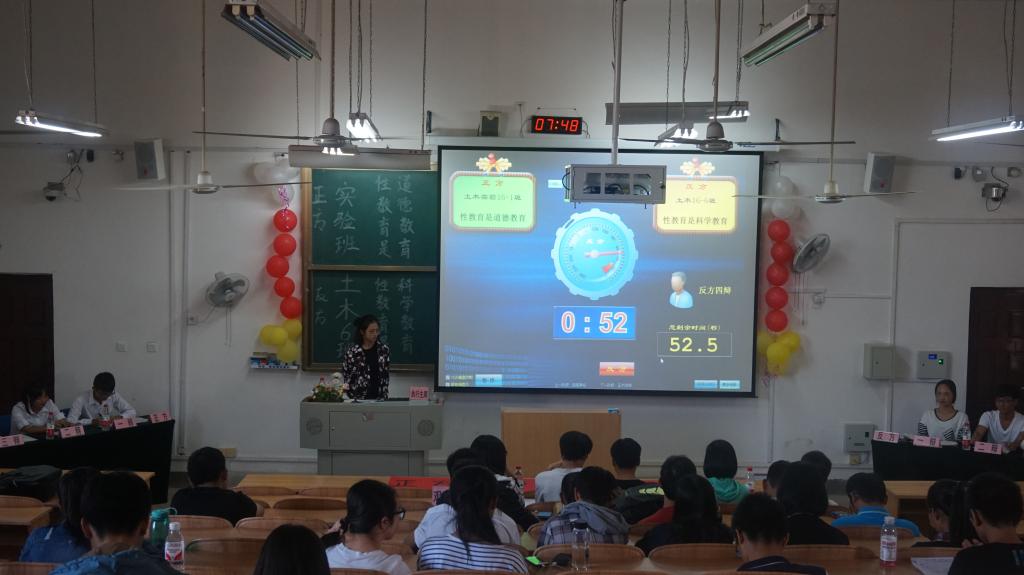 当天,以土木类2班为正方,建筑类3班为反方展开以“当今中国是否应该征收遗产税”为辩题的第一场半决赛。正方一开始就从分析遗产税在中国实施的可行性出发,以美国为例子,就自己的观点充分发表自己的见解。对于反方提出美国在此税上收入很少的反驳,正方直截了反驳道:美国明知收入少却为什么不废除遗产税政策。在短暂而又精彩的辩论中,建筑类3班覃焕宁同学获得“最佳辩手”称号,正方土木类2班最终取得胜利。辩论赛半决赛第二场此刻也战火纷飞,双方剑拔弩张,引经据典,在场观众也沉浸于思维逻辑的海洋里,最后土木类4班王玉琦同学荣获“最佳辩手”,建筑类2班成功晋级决赛。