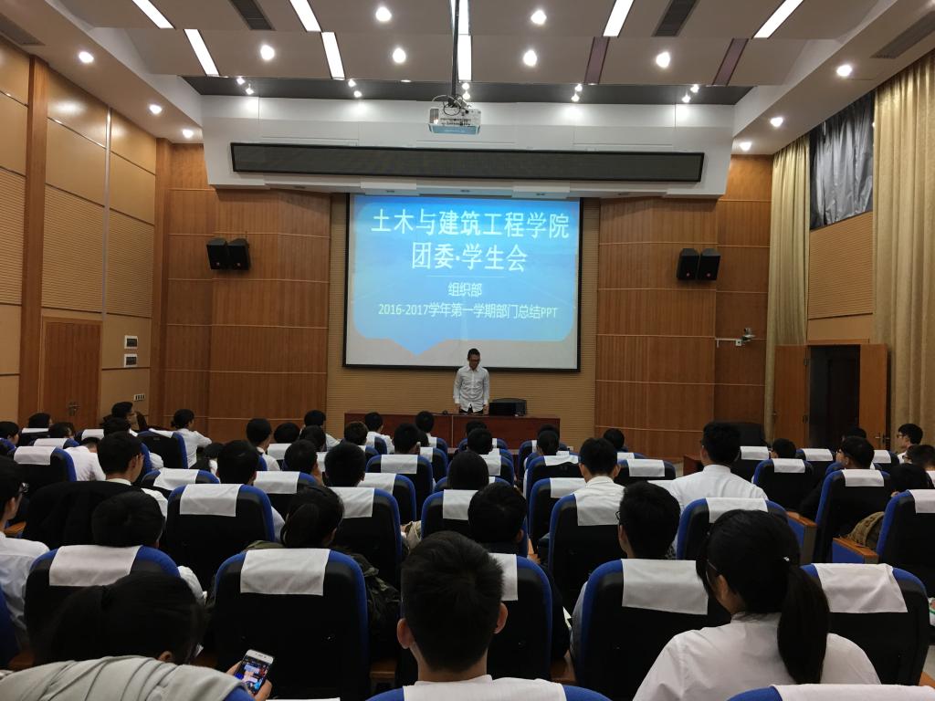 会议伊始,李富力副主席率先对团委·学生会本学期工作作简单介绍和分析。紧接着,各个部门的代表上台讲述本部门在这个学期举办的活动中存在的一些缺点和不足,有则改之无则加勉。当然,也详细指出了本部门做得好的地方,并且会更好地弘扬下去,提高工作效率。此外,每个部门也都强调指出要善于学习和借鉴其他优秀组织的工作经验,做到取其精华,去其糟粕,将我们团委·学生会这个大家庭办得更加成功。各个部门总结过后,主席团成员也和大家一起分享了他们在本学期工作中的一些收获和感悟,同时也对下学期的工作提出了宝贵意见。最后,团委·学生会全体成员进行了合影留念,本学期工作由此暂告一段落。