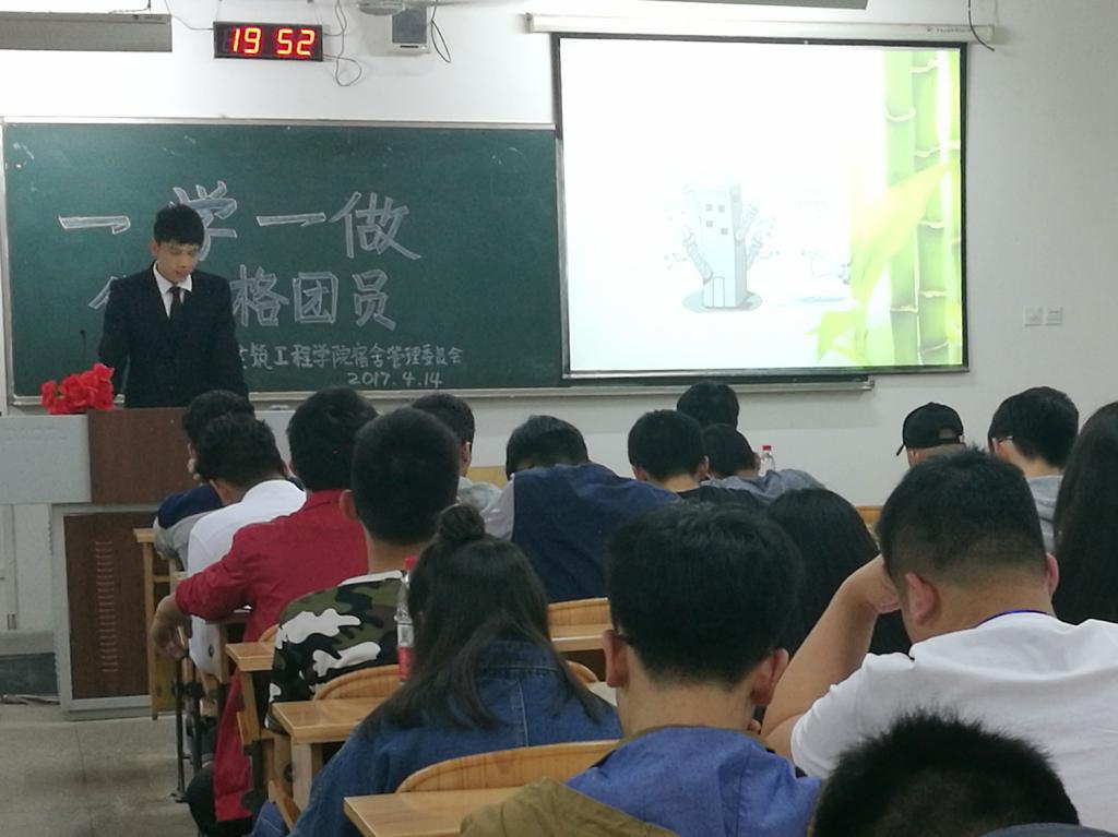 雁山校区的会议由学院宿管委干事韦炳键主持,内容主要围绕“学习习近平总书记重要讲话精神和治国理政新思想”,号召同学们在行动上践行优秀共青团员。各班生活委员对会议内容进行记录与学习,并将在会后向本班级的同学进行宣传。