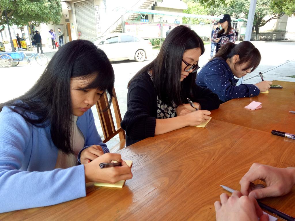 屏风校区的宣传活动得到了同学们的大力支持,路过的同学会停下脚步,在践行“一学一做”的签名墙上写下自己的名字,并将自己心目中理想的团员、党员应该具备的优秀品质写在便利贴上,贴在寄语墙上,用行动参与到“一学一做”的学习中。