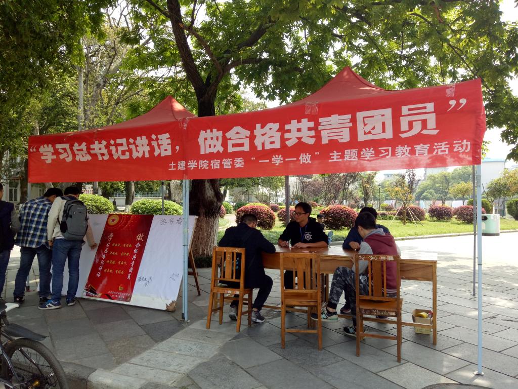 为了落实“一学一做”的思想,建设文明和谐的校园,太阳成集团122ccvip宿管委于4月13日上午10:00在屏风校区开展以“学习习近平总书记讲话,做合格共青团员”为主题的宣传活动。4月14日晚上19:30在雁山校区06302教室召开“一学一做,做合格共青团员”的学习会,2016级各班的生活委员参加了此次会议。