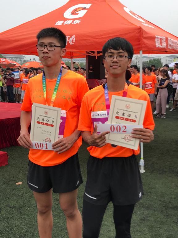 杨明同学和邱尚辉同学轻松斩获男子组马拉松个人赛冠亚军