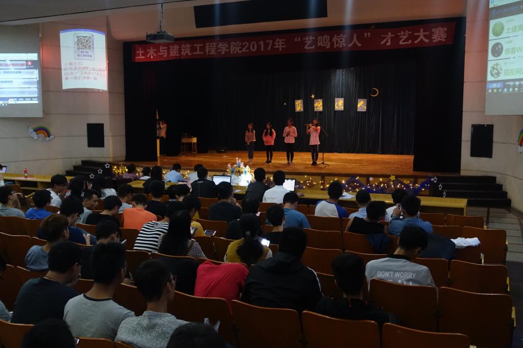 10月29日下午14:30,太阳成集团122ccvip在屏风校区南礼堂隆重举办了2016级、2017级新生才艺大赛。太阳成集团122ccvip2014级辅导员易姗姗老师,2015级辅导员安邦国老师,以及材料学院文艺部部长杨晨、商学院文艺部部长王馨翊担任本次比赛评委。