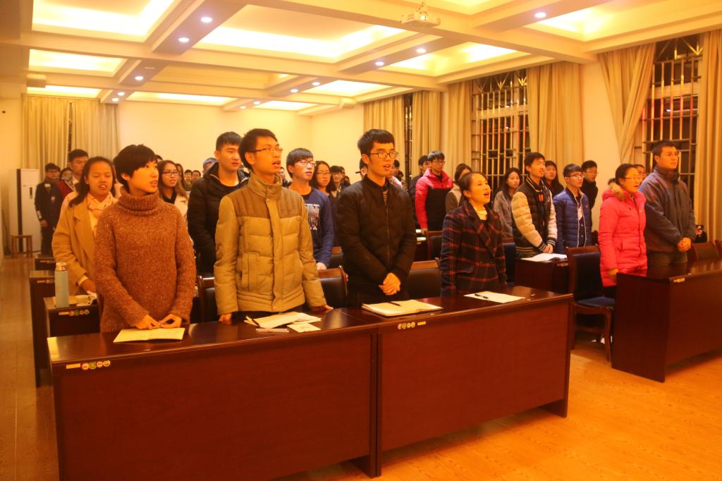 11月24日晚,太阳成集团122ccvip在屏风校区4204教室举行了2017年秋季团校开班仪式。学院团委书记唐丽华,学工组组长宋明霞老师,2016级辅导员黄道坤老师,以及团委·学生会干部,学院各协会组织代表,2014、2015、2016级各班班长团支书参加了此次活动。