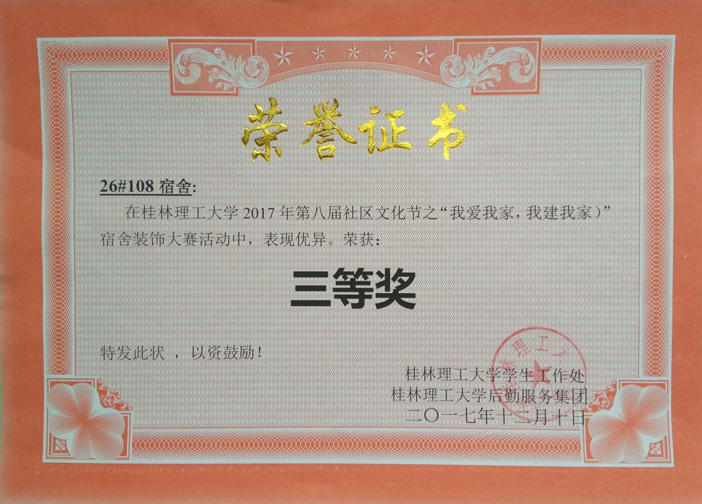 该项活动进一步迸发了同学们爱校园、爱宿舍的激情,增强了团队合作精神和寝室成员间的凝聚力,推动了校园精神文明建设。