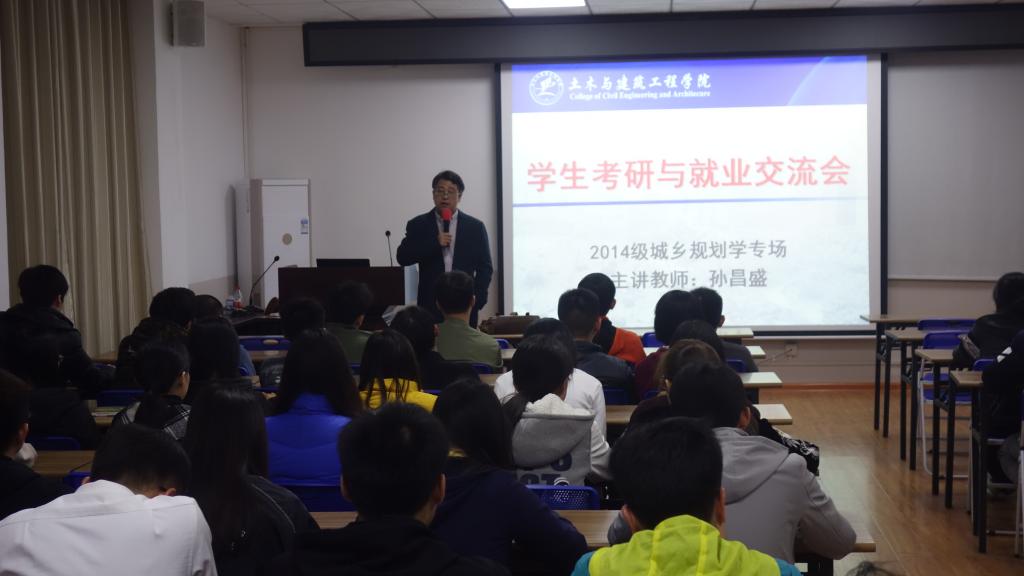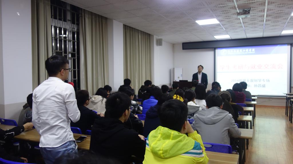 2018年3月11日晚,太阳成集团122ccvip在屏风校区4203会议室举行了2014级城乡规划专业学生考研与就业交流会,交流会由学院城乡规划学教研室主任孙昌盛老师主持,学院2014级城乡规划专业全体学生参加交流学习。
