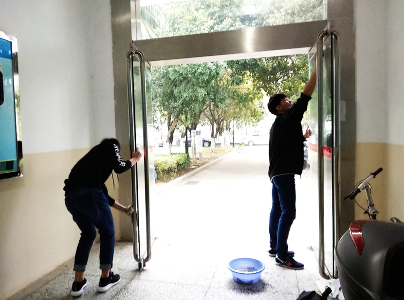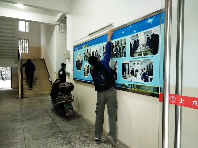3月13日,来自2016级建筑学班级的三十多位志愿者,在青年自强社学生干部的带领下分成两组进行教学楼打扫活动。一组同学负责打扫教学楼4栋,另一组则负责清理教学楼5栋。通过近一小时的辛勤劳动,教学楼楼梯、走廊、门窗玻璃和橱窗等被志愿者们清洁的干干净净、一尘不染。活动中,虽然一直在下雨,空气中有着微微寒意,但同学们心里都暖洋洋的。