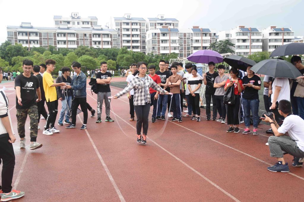 本次趣味运动会共设有拔河、跳绳、男生引体向上以及女生仰卧起做等比赛项目。这些比赛项目将竞技与娱乐相结合,着重同学们的合作参与,充满了趣味性和互动性。比赛当日,即使天空不作美,天空下起了毛毛细雨,但各班同学个个都表现了极佳的运动状态,对每一个项目都努力拼搏,团结奋斗。比赛现场充满了掌声、笑声、欢呼声,趣味运动氛围浓厚。