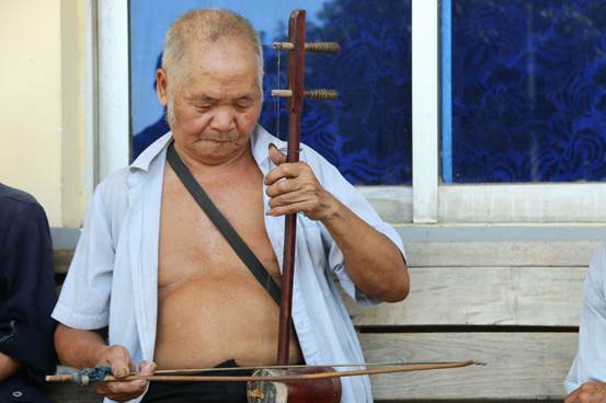 拉二胡的老人,曾患有白内障,后因国家免费为他进行手术而重获光明
