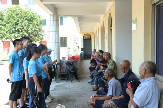 7月17日上午,成员们带着水果等慰问品到界首敬老院进行活动。界首敬老院是当地占地面积最大的敬老院,不过目前入住的老人并不多,敬老院的设施与服务也还在不断完善中。
