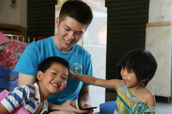 7月17日下午,社会实践团队成员来到界首镇上的金色童心幼儿园,看望那里的留守儿童。暑期的幼儿园约有四十多名小朋友,其中留守儿童共十二名。成员们通过与孩子们聊天、玩游戏等方式,尽快拉近与孩子们的关系,孩子们的表情也由紧张、警惕,变得放松和信任。在与幼儿园老师和孩子的交流中,团队成员们了解到,这些留守儿童虽然表面上看起来很欢乐,但其实都很想自己的父母,他们很多甚至都不知道自己的父母在哪里打工,迫于无奈只能跟爷爷奶奶住在一起。通过短暂的了解,团队成员们发现孩子们其实比许多人想象的要聪明,他们有的已经在学数学、语文甚至还有英语,年龄稍大点的孩子不仅听家中老人讲红军的故事,知道红军堂,并且去过那里,开始接受红军精神的熏陶。