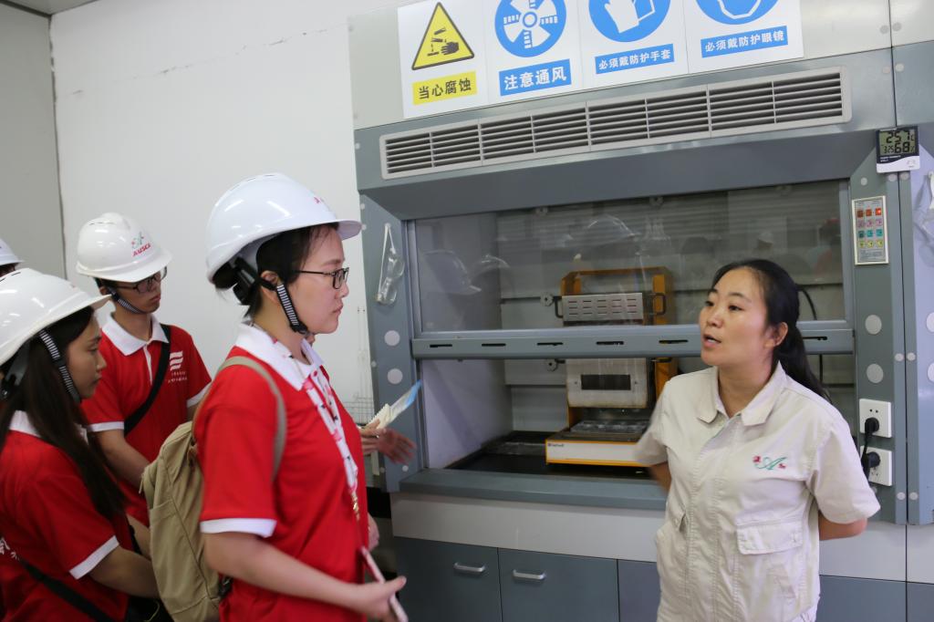 在结束北部湾港防城港码头的行程后,实践团一行抵达了防城港市澳加粮油工业有限公司,受到了该公司行政人事部主任孙舟等职工的热烈欢迎。在他的带领下,实践团参观了该公司精炼车间、品管部和实验室。据介绍,澳加粮油公司在生产全程及行政办公、人员管理均采用智能化信息化管理,该公司于2018年被评为广西区“智能工厂示范企业”,目前该公司的生产原料均为进口大豆、进口菜籽,其大力研发的山茶油产品也正计划远销国外。