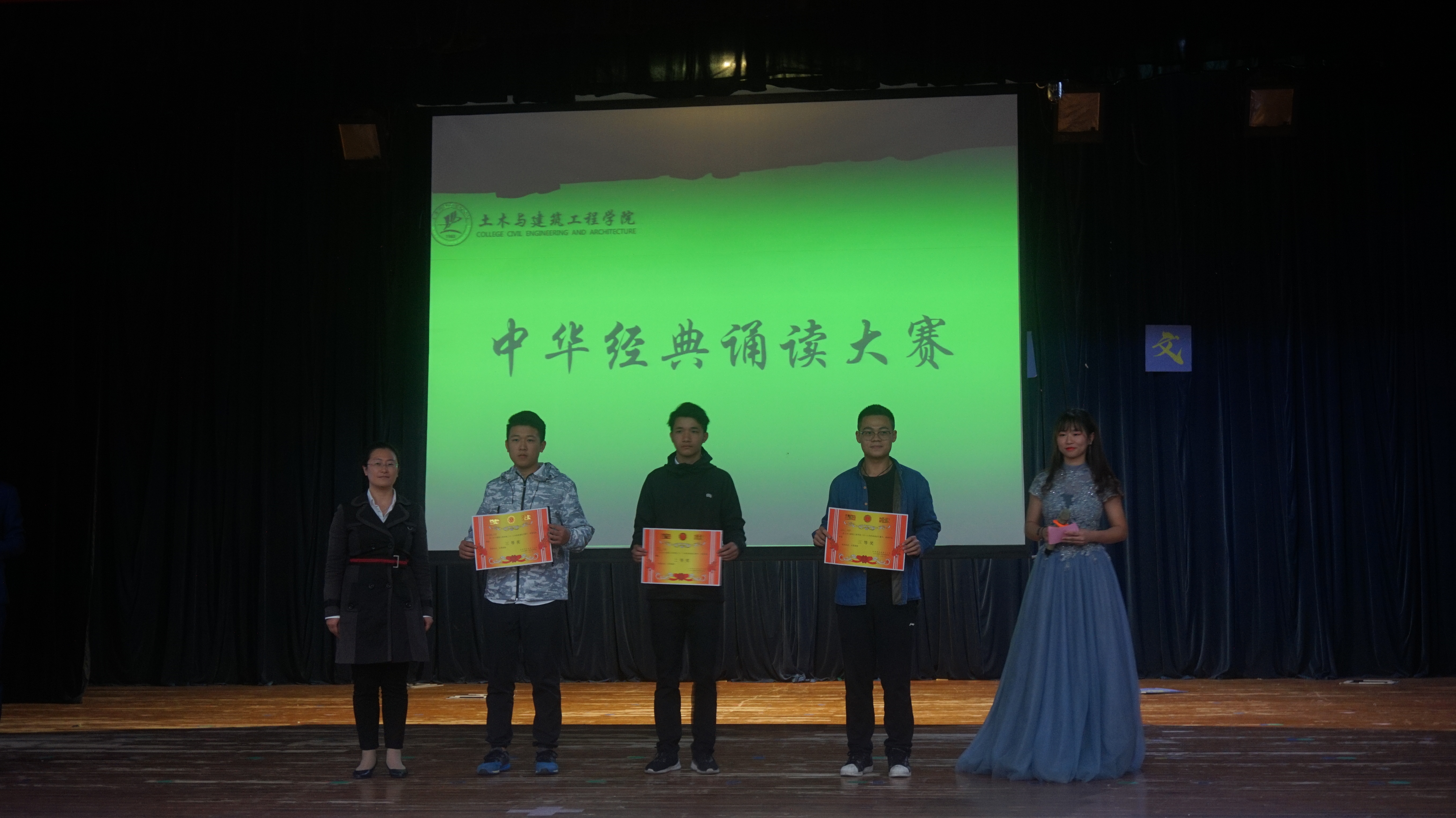 本次活动共有21个团队参加,同学们都热情参与,场下座无虚席,场上竞争非常激烈。其中,唐昊同学以饱满的热情、昂扬的精神状态朗诵《少年中国说》,并赢得场下阵阵掌声,最后以90.29的高分获得了本次活动的一等奖;方秋连等四位同学声情并茂的《热爱生命》,刘雨彤组合铿锵有力而感人肺腑的《祖国啊,我亲爱的祖国》荣获本次比赛二等奖。本次活动的结尾开展了“诗词大会飞花令”的游戏,同学们都积极参与。在现场活跃的气氛中,石习杰老师给在场观众诵读他为本次活动即兴创作的诗文,赢得了同学们热烈的掌声。