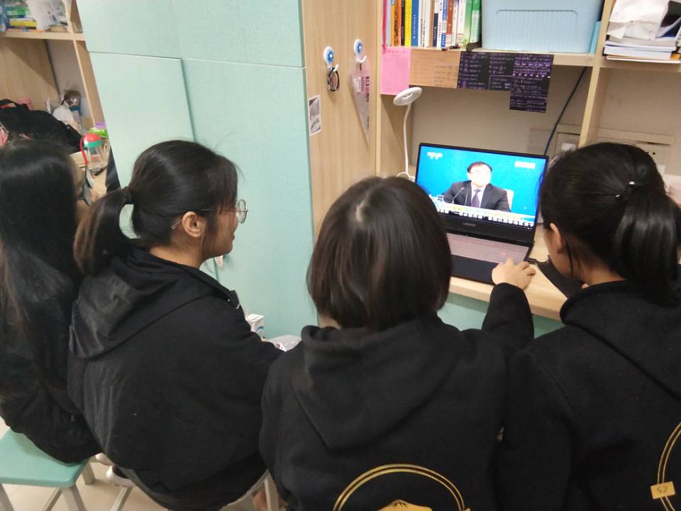 同学们在宿舍观看“两会”视频