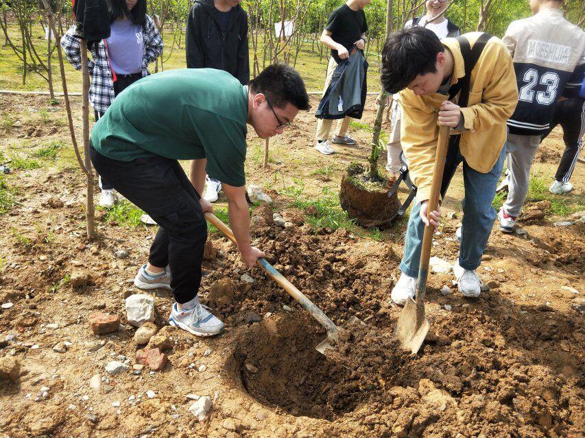 在活动当天,全体同学早晨八点半于园林植物园门口集合,领取植株一同到植物园中种植。在园丁汤阿姨的指导下,同学们不仅迅速掌握了如何栽植树苗的方法,也深刻地体验到了挖树坑、栽树苗整个过程的乐趣。同学们在经过扶正树苗、填土、踩土、再填土等工序后顺利栽种小树苗,并为小树苗浇灌肥料、挂上名字记号牌。