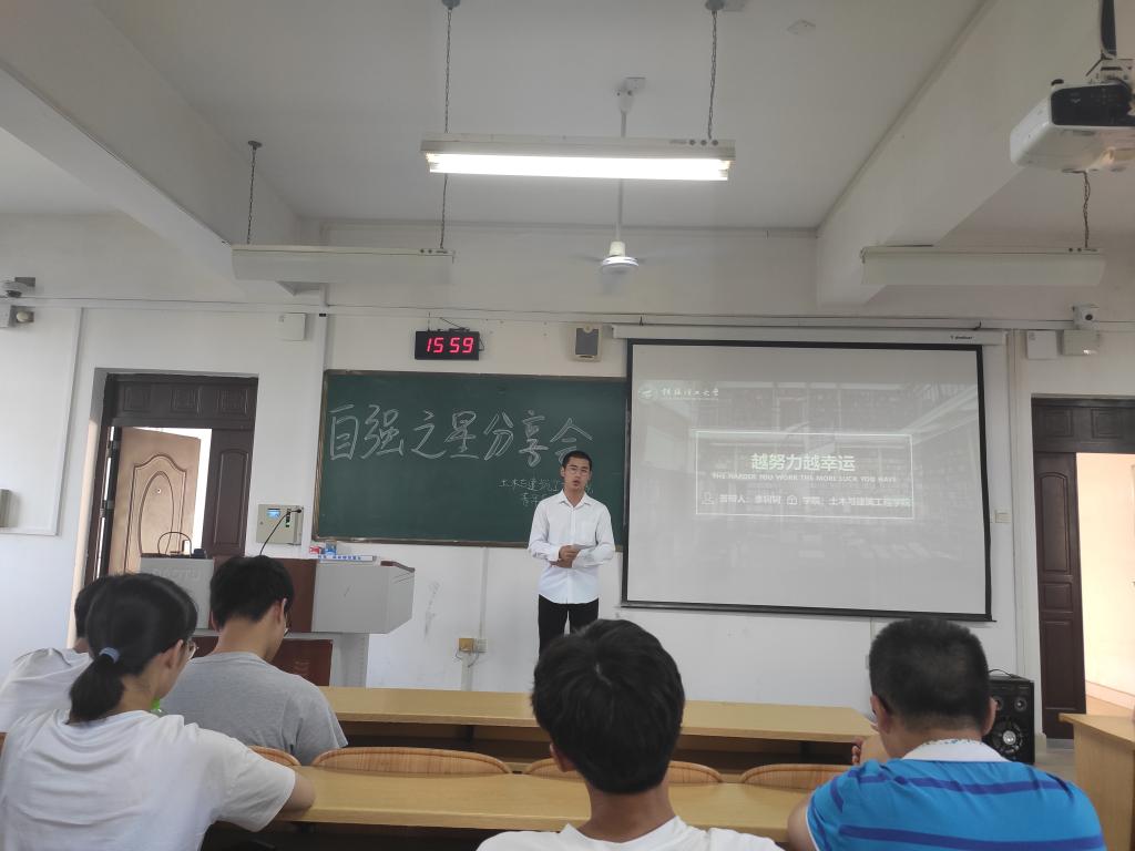 为了更好的发挥学院“自强之星”标杆的领航作用,激励和引导广大家庭经济困难学生自立自强,知恩感恩。6月3日,学院青年自强社在在雁山校区5304教室召开学院“自强之星”领航团分享会,2018级全体学生参加。