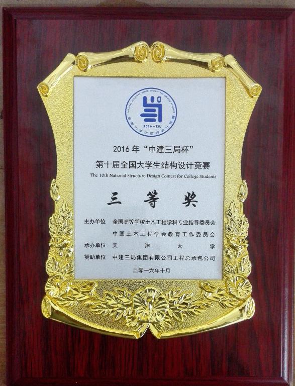 2016年第十届全国大学生结构设计竞赛三等奖