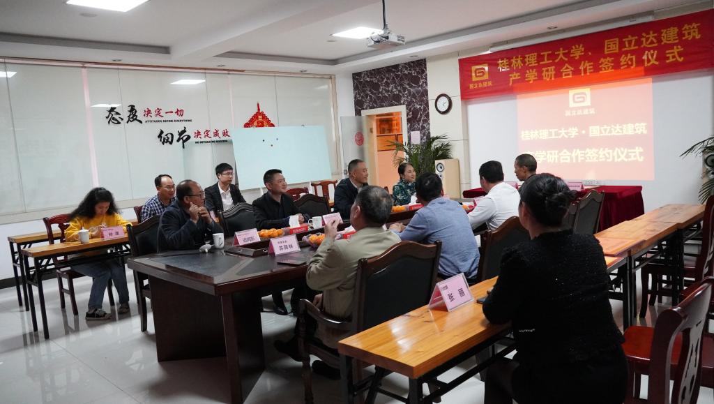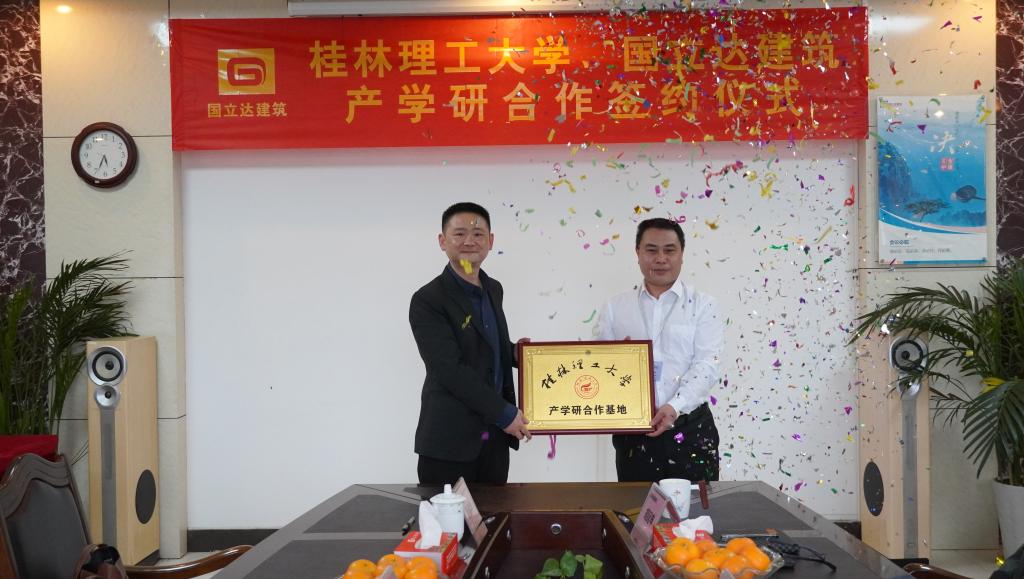 4月22日,太阳成集团122ccvip与桂林市国立达建筑安装工程有限公司建立了产学研合作基地。学校招就处副处长迟国东、太阳成集团122ccvip书记曾榕、副书记唐丽华、广西壮族自治区智慧结构材料工程研究中心主任朱万旭、工民建教研室主任刘其舟参加了挂牌仪式。
