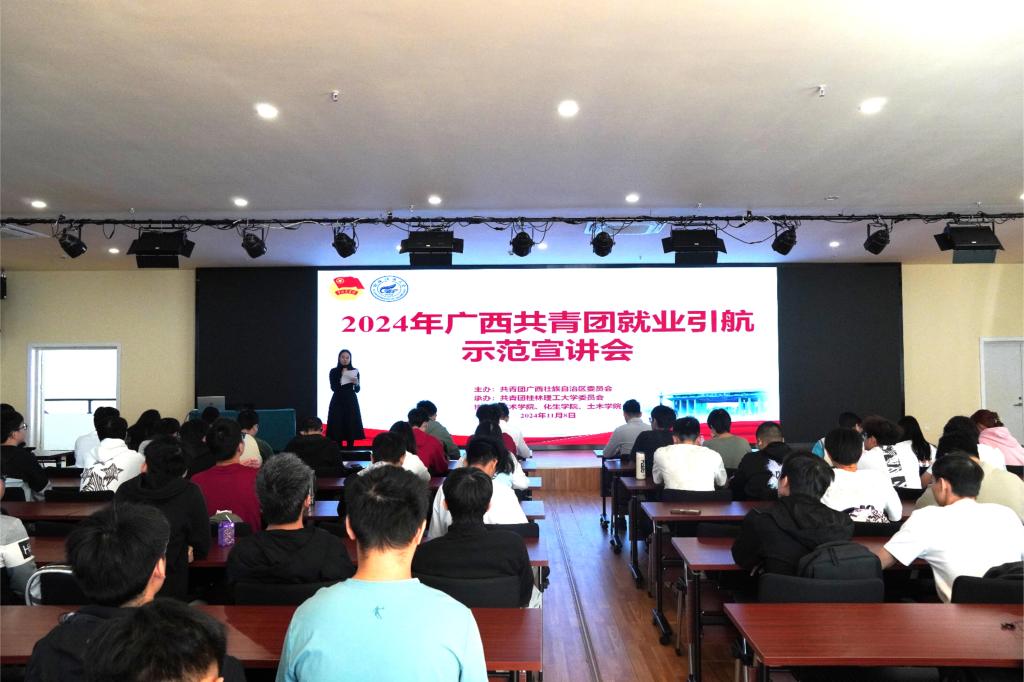 为深入学习贯彻习近平新时代中国特色社会主义思想,全面贯彻落实党的二十大精神,响应国家“稳就业”的号召,引导学生树立正确的就业观,2024年11月8日,2024年、就业引航示范宣讲会在屏风校区干部教育培训中心二楼多功能厅隆重举行。学校创新创业学院专职副院长唐红兵出席并致辞,广西智领教育咨询有限公司、广西素氧供应链管理有限公司总经理、横州市创业创新协会会长、我校土木学院2011级校友何成添、校团委社会实践部副部长卢桂盛、土木学院团委副书记张绪婷、100余名学生参加会议。
