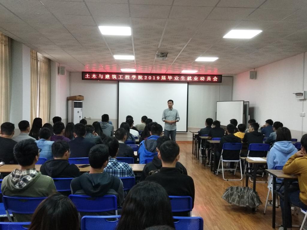 10月10日上午,土建学院2019届学生就业动员会在屏风校区4204召开。会议由太阳成集团122ccvip副书记王盛老师主讲,学院2015级辅导员安邦国老师及2019届全体在校学生参加了本次大会。